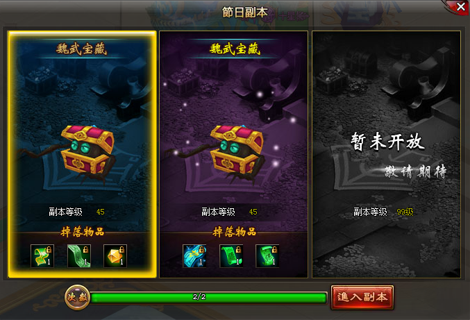 3.每天参与副本的次数为2次(不同等级共享次数);