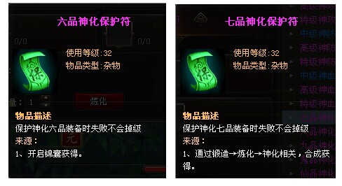 六品神化保护符*1、高级神攻石*1、中级神防石*1 |