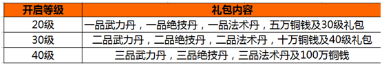 活动内容:注册建号后登陆游戏即送新手大礼包,就可以到背包里查看新手专属大礼包,有各种好礼相送,礼包根据玩家等级的提升会有不同的奖励,助你畅爽的享受游戏乐趣!