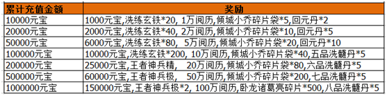 活动内容:开服期间累计超级大返利活动