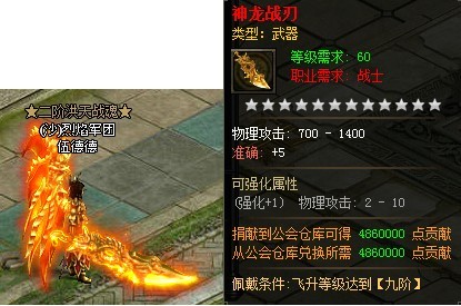 2、 开放宝藏积分兑换9阶神龙系列装备