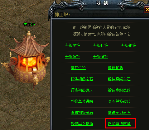 在[沙漠土城]的“神工炉”处可将烈焰系列首饰免费转换为其他部件: