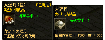 大还丹:瞬间恢复1500HP、300MP(开服第12天可使用)