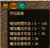 穿戴[烈焰·神剑]和[烈焰·神甲]的玩家,可获得烈焰套装隐藏属性BUFF(效果如下图)