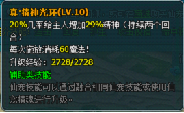 2、仙宠技能:应广大玩家要求,仙宠增加新技能------精神光环,可通过刷新仙宠蛋或仙宠金蛋获得;三阶精神光环可通过技能书升级为真·精神光环。