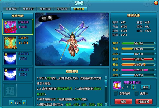 1. 应广大玩家要求,翅膀增加洗髓功能,属性分配,随心所欲。