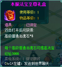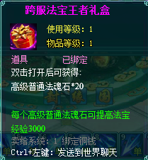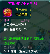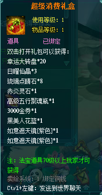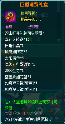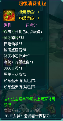 3, 消费礼盒中的法宝道具等级70级以上玩家才可获得。