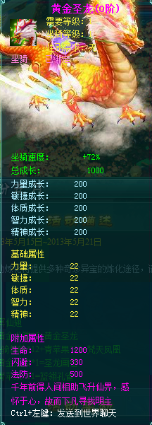 坐骑精魄*20+黄金龙鳞*5=黄金圣龙