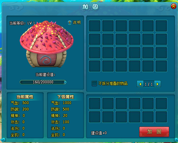 2. 加固:使用仙园珍珠,直接增加房屋建设值。珍珠等级越高,增加的建设值越高;