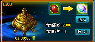 1. 转化需要消耗一定的铜钱、宝石碎片(由商场和活动获得)和时间。