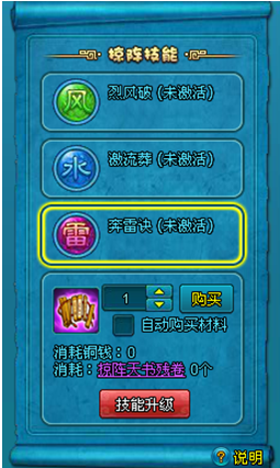 4.使用掠阵天书残券提升掠阵技能等级,技能等级越高,效果越好。