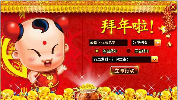 ②使用【新春贺卡】祝贺好友,好友将化身【福娃】形象,并获得属性加成。