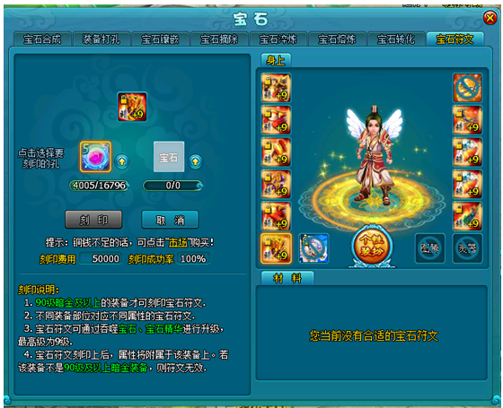 1.90级暗金及以上装备开放宝石符文刻印功能。宝石符文通过九重天副本获得。