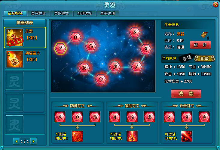 2.装备红色灵器符文后,符文属性以及灵器技能效果全面提升。