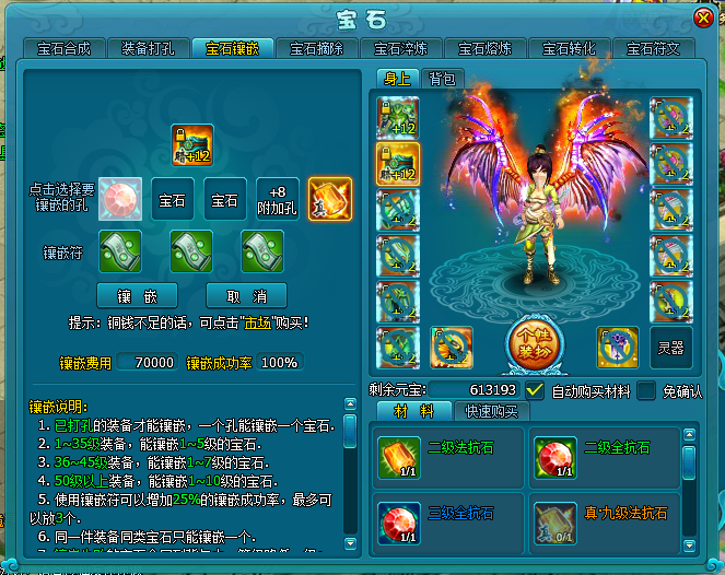 3.防御类宝石,可镶嵌在衣服、腰带、护腕、护手、裤子、鞋子装备孔上。
