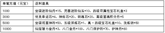 温馨提示:单笔充值奖励可重复领取,不设上限,奖励物品均为绑定,以信函方式发放。