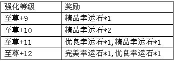 活动规则:活动期间,任意装备至尊强化成功至指定级别,都可获得额外奖励。