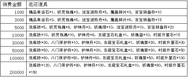 活动规则:活动期间,玩家在除市场外其他全部系统累积消费至指定额度,可获得额外的奖励。