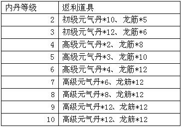 活动规则:在刷新内丹重铸系统每消费800元宝即可获得高级元气丹*3奖励!