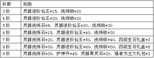 活动规则:活动期间将灵器进阶至指定阶数,将获得额外系统奖励。