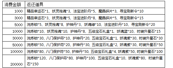 活动期间,40级以上玩家每天登陆游戏可获得额外奖励:仙宠精魂.紫*8、仙宠口粮*8、绑定铜钱卡*8、神秘商店令牌*1、飞仙令牌.绿*5。