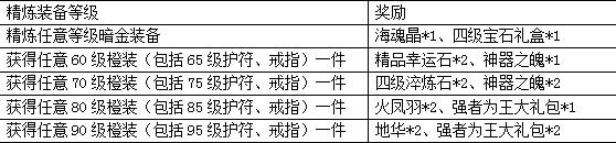 活动规则:活动期间,玩家精炼成功任意仙宠暗金装备,即可获得系统奖励一份,活动可重复参与。