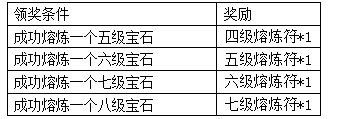 活动规则:活动期间,玩家每熔炼成功一个指定级别宝石,即可获得系统赠送的好礼一份。