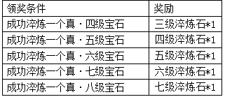 活动期间,玩家每淬炼成功一个指定级别的真·宝石,即可获得系统赠送的好礼一份。