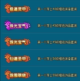 活动内容:新服开启前五天,谁能从人海之中脱颖而出,成为等级最高的王者呢?开服前五天,等级排到前十名的玩家将会得到精美的冲级大礼包一份,燃起来吧,少年!向等级榜发起冲击。
