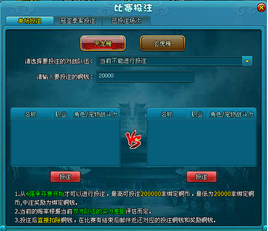 2.武神坛之战,增加下注功能。