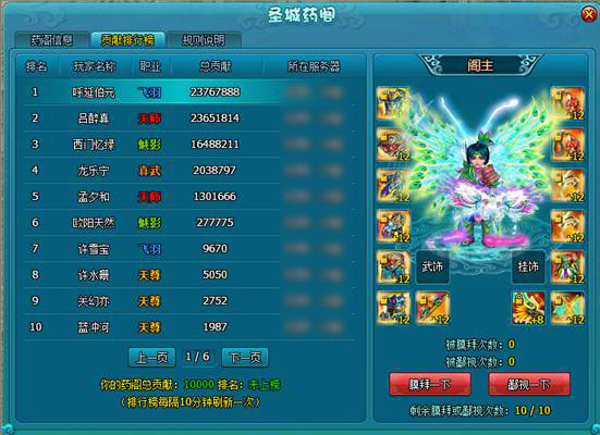 5. 阁主产生机制优化,排行榜中总贡献第一的玩家将成为阁主;