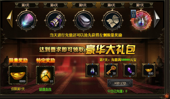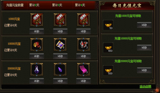 活动期间玩家每日消费达目标,即可领取相应的奖励