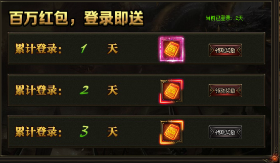 活动期间,玩家每日在固定时间段内登录游戏,即可领取大量奖励!若错过时间,则当天该次奖励不能再领取。千万不要错过哦~