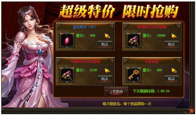 活动期间玩家可每天在超值购买中以超低折扣购买道具奖励。