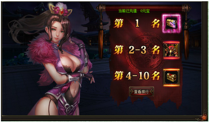 活动期间,玩家累计充值排行,与全平台玩家同场较量。第一名玩家可获得“壕放不羁”称号及飞升武器!第2-3名玩家可获得飞升衣服,4-10名玩家可获得飞升防具箱
