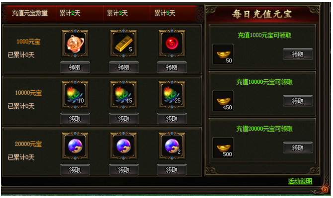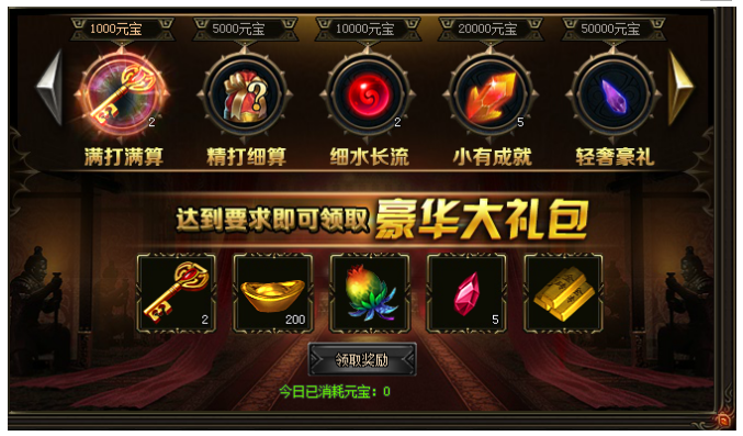 活动期间玩家每日消费达目标,即可领取相应的奖励