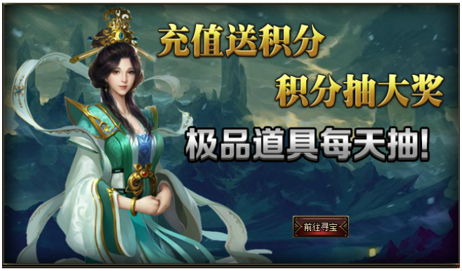 活动期间,每充值100元宝获得100积分,消耗积分进行抽奖。积分抽奖可获得大量极品装备和稀有道具,并有几率产出蛮荒碎片。有限量的蛮荒神剑,蛮荒神甲,蛮荒碎片礼盒等待玩家抽取,一旦道具剩余数量为0,则无法再抽出