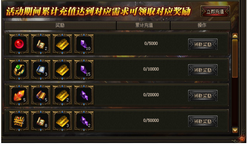 活动期间,玩家累计充值达到目标即可领取巨量极品奖励!