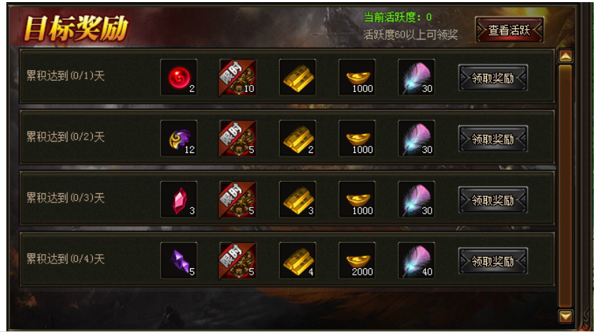 活动期间,玩家每天达成活跃度要求即可领取奖励。累计4天即可领取全部奖励。