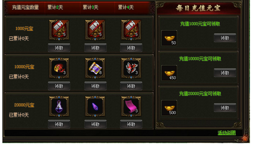 活动期间玩家每日消费达目标,即可领取相应的奖励