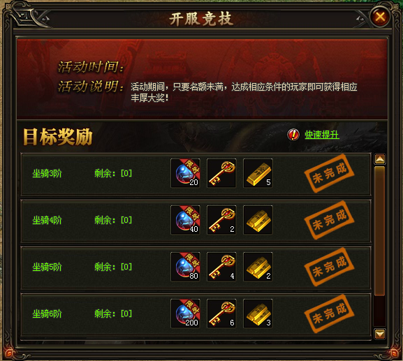 活动期间,只要名额未满,达成坐骑竞技条件的玩家即可获得相应丰厚大奖