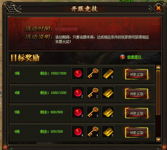 活动期间,玩家等级提升达到目标等级,及可领取等级竞技的丰厚奖励