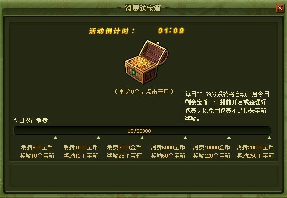 5、活动结束后系统将自动开启未开启的宝箱,背包满的:获得的宝石、菜肴将消失.