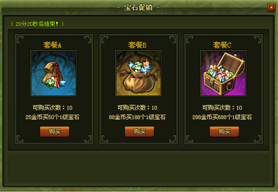 活动开启后点击活动按钮即可打开页面直接购买宝石