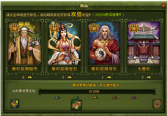 活动规则:祭祀银币、宝石、灵石收益翻倍。