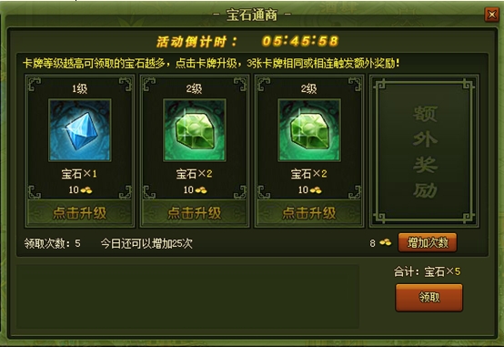 2、可花费金币增加领取次数。