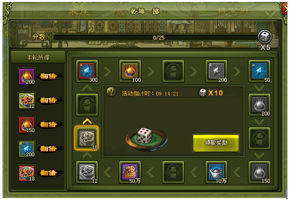 2. 每轮抽奖可投5次骰子,奖品每轮刷新一次。
