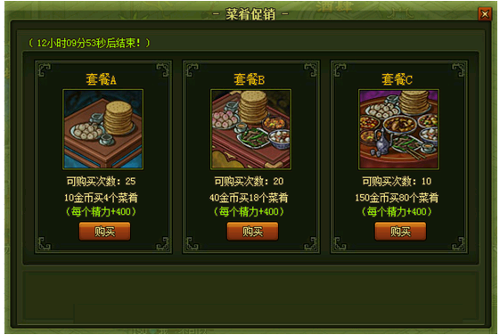 活动开启后点击活动按钮即可打开页面直接购买菜肴