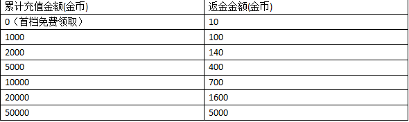 活动期间,累积充值即可获得高额金币返利,充越多返越多;