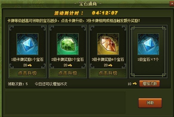 4、第四个卡牌位显示为当前卡牌领取后可获得1级宝石的数量。